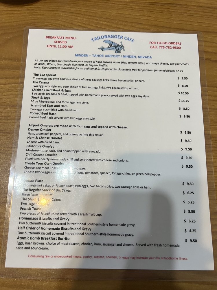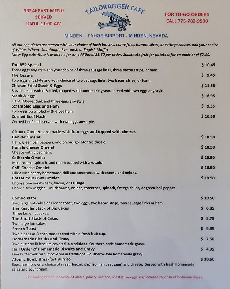 Welcome to Taildragger Cafe, a charming American eatery nestled at Minden Airport. Serving breakfast and brunch, this café has quickly garnered a reputation for its hearty, fulfilling meals and warm atmosphere.